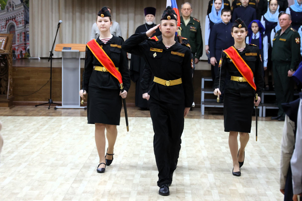 По сложившейся традиции понедельник для учащихся начался с утреннего молитвенного правила, торжественной линейки и совместного исполнения Гимна России. Чести выносить Флаг Российской Федерации были удостоены воспитанники гимназического кадетского клуба имени А.В. Суворова. С приветственным словом к присутствующим обратился директор православной гимназии протоиерей Евгений Худин, он же представил ребятам почётного гостя.