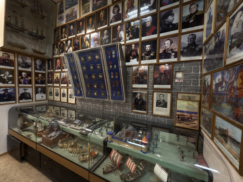 Во время экскурсии была возможность узнать имена выдающихся героев России, познакомиться с их подвигами, увидеть экспозицию орденов и медалей, а также рассмотреть макеты кораблей — от парусных судов до современных подводных лодок. Особый интерес вызвала история развития Военно-Морского Флота, отражающая прогресс морского вооружения и тактики.